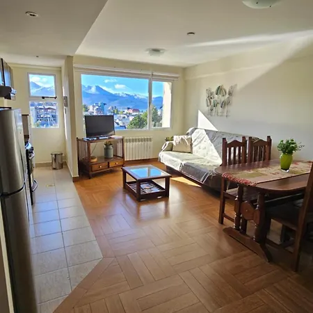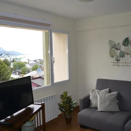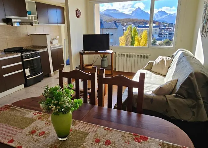 Este apartamento de 43 m^2 está a 10 km do aeroporto Internacional de Ushuaia. Terraço enfrenta a montanha.